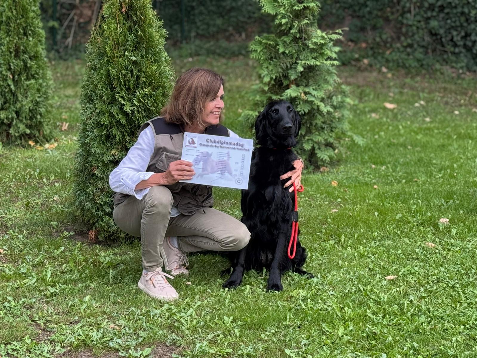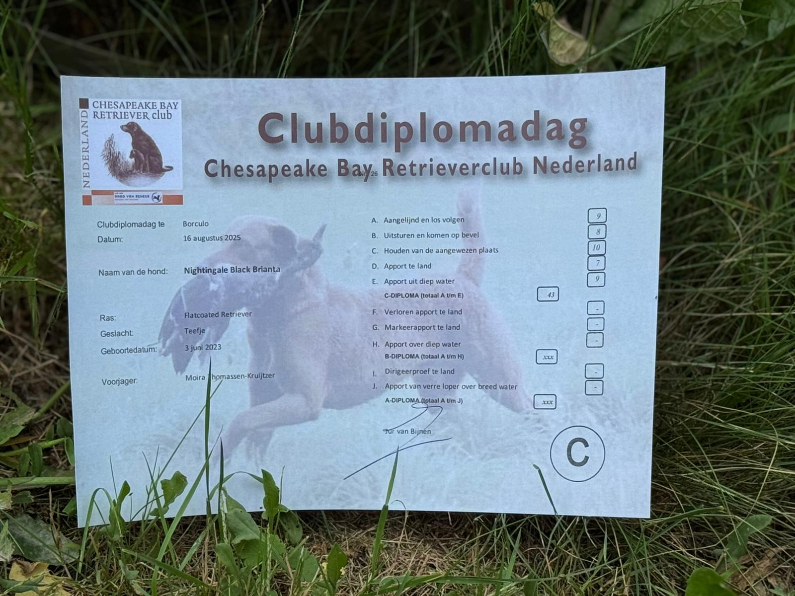 Het was een druk maar zeer geslaagd weekend. Zaterdagochtend 4.30 uur ging de wekker en om 5.45 uur ging ik met Nayeli de auto in richting Borculo waar we deel gingen nemen aan de CDD van de Chesapeake Bay Retriever Club. Het was een hele lange dag want we waren ’s avonds om 18.45 uur weer terug in Dongen maar met mooi resultaat want onze lieve Nayeli heeft haar C-Diploma gehaald en voldoet nu ook aan alle eisen om met haar te mogen fokken. Zondagochtend was de Nestwandeling van het nestje van Harvey en Dakota in Steenbergen op het mooie Landgoed Arcadia, heel veel dank aan Bianca dat ik hier weer de wandeling mocht houden. Het was een heel gezellig samenzijn en heel leuk om de meeste hondjes weer terug te zien. Hieronder 2 foto’s van zaterdag van Nayeli en daaronder van de Nestwandeling.