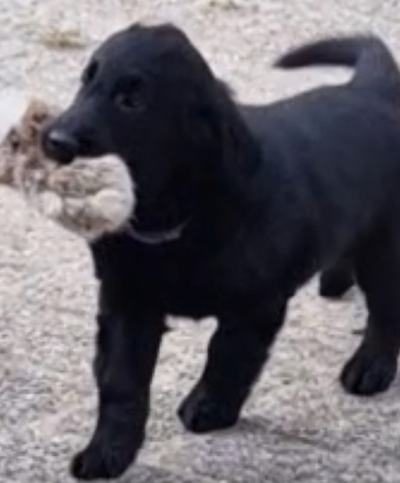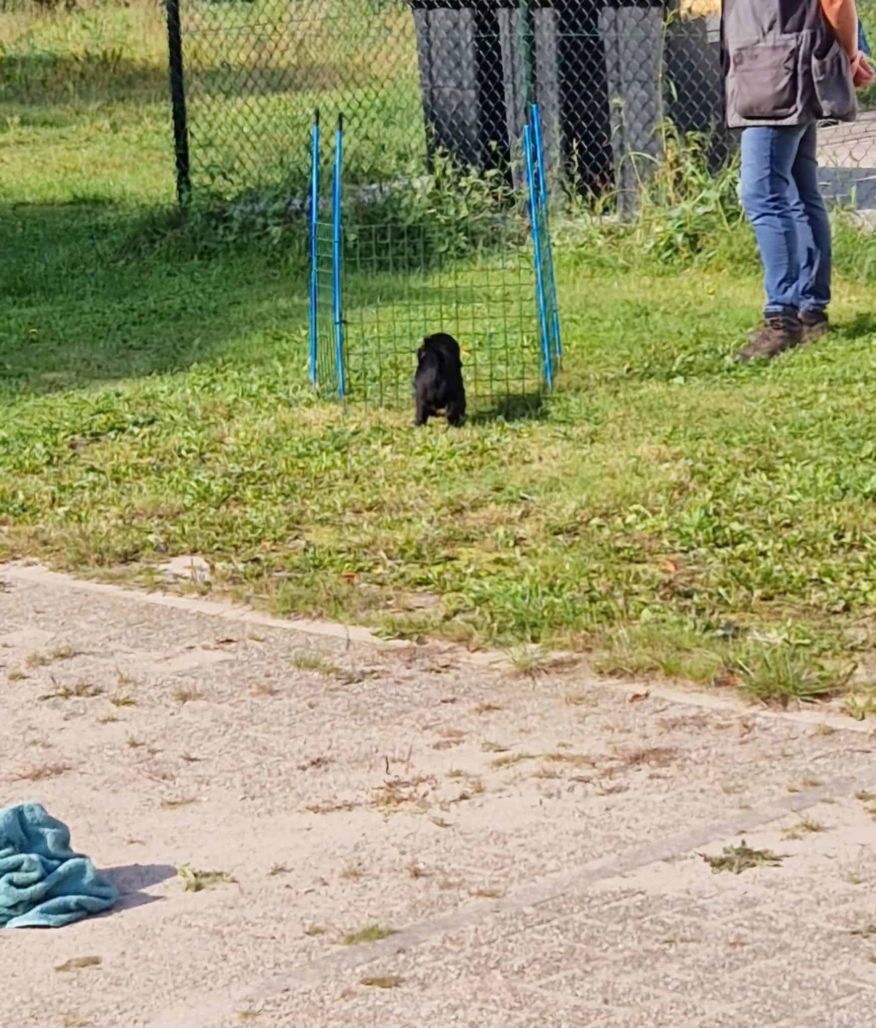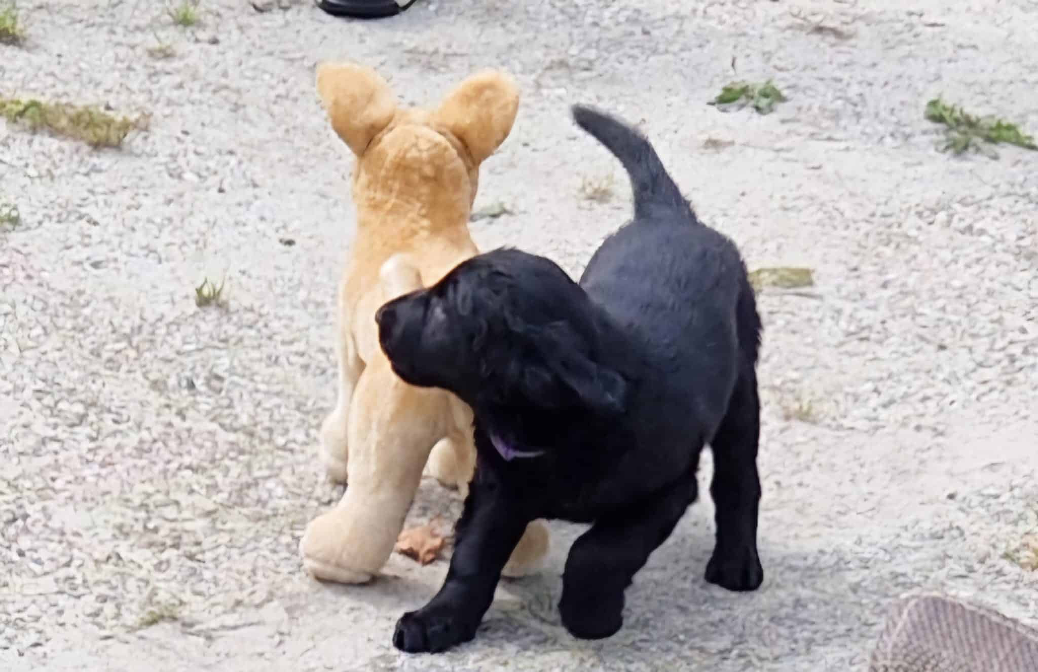De pupjes zijn vandaag 7 weken en 2 dgn. Gister heb ik met Kyra en Vincent 4 rondes met ze gereden en telkens hadden Kyra en Vincent 1 pupje op schoot. De pupjes deden het geweldig en vonden het heel interessant, reutje grijs was de enige die een piepje heeft laten horen maar verder alles voorbeeldig. En dan vandaag de dag van de Puppytest van de FRC. Rond de klok van 10 waren Meta van de Glind en Gracia Lemmers hier om de pupjes vakkundig te testen. Ik was in het goede gezelschap van vriendin Simone die alle foto’s ook voor haar rekening heeft genomen. Het weer was ons uitermate goed gezind en de uitslag van de Puppytest ben ik ook zeer tevreden over: er zijn weinig verschillen tussen de pupjes, een homogeen nest en zeer mensgerichte pupjes en dat laatste is iets wat je heel graag ziet bij flatcoats. Doordat er zo weinig verschil tussen de pupjes zit, is het ook lastiger om de juiste match te maken. Morgen zal ik een beslissing nemen wie welke pup zal krijgen. Mijn jachttrainer Gerrit van Alphen komt hier morgen ook nog een keer naar de pupjes kijken, heel fijn, zeker voor de pupjes die jachttraining gaan doen. Vorige week hebben Marianne en ik ze al op hun uiterlijk beoordeeld en morgen komt ook Bianca en dan gaan we dat nog een keer doen voor de mensen die met hun hondje naar de show willen gaan.