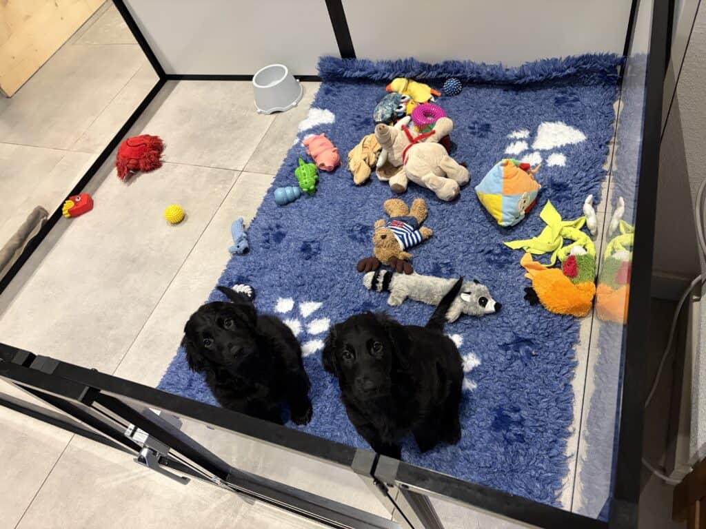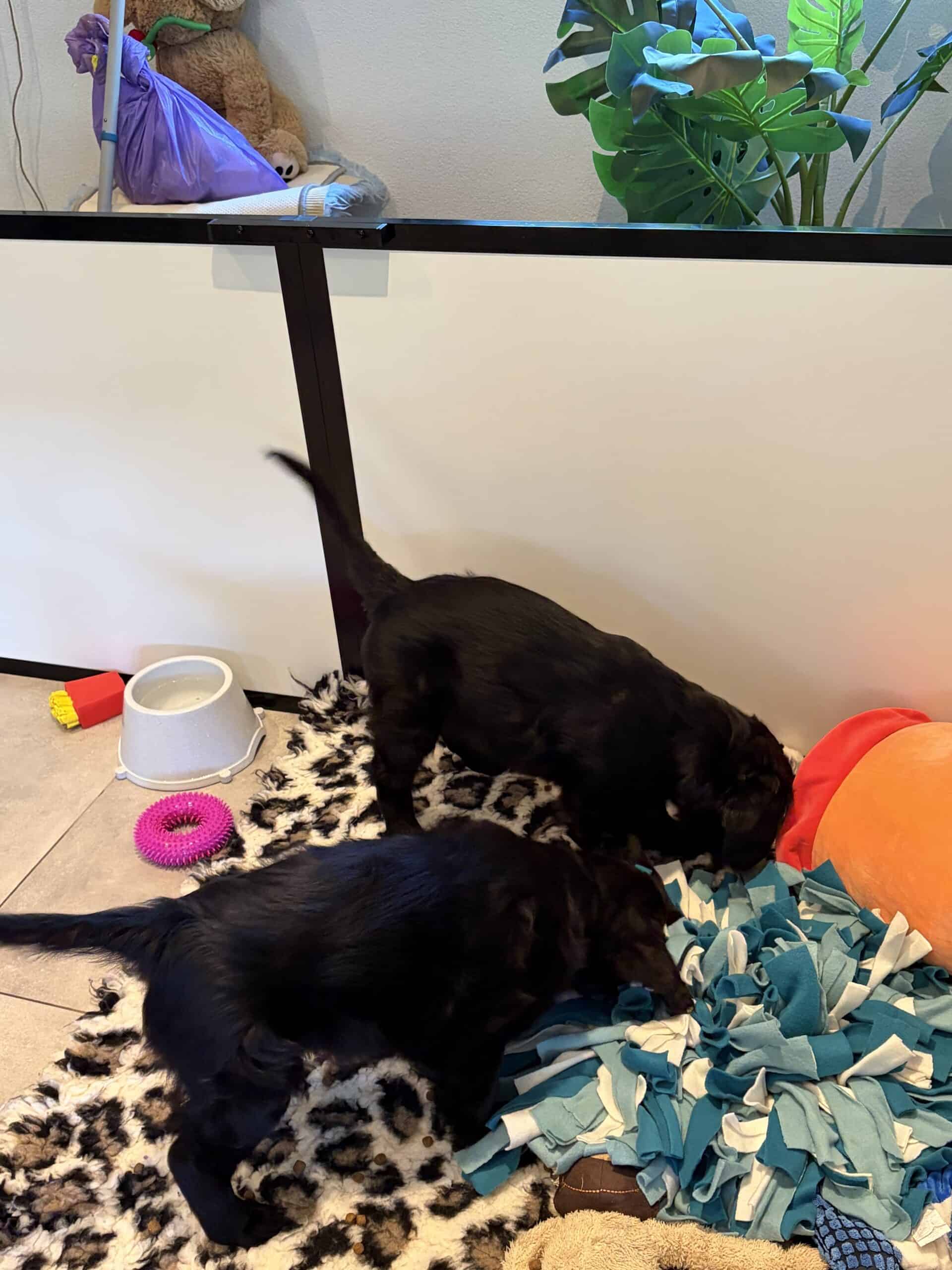 Vandaag zijn de 2 pupjes precies 8 weken oud en dit is ook de afsluiting van het Dagboek. Afgelopen week heb ik nog enorm genoten van het tweetal. Waar ik van te voren echt wel even moest slikken bij de gedachte aan een nestje van maar 2 pupjes, is dit het meest fantastische nestje ooit geweest. Het was zo speciaal om zo’n mooie band te hebben met deze 2 kleintjes en dan ook nog het geluk dat de kleine meid bij ons en haar lieve moeder Nayeli blijft. Gisterochtend kwamen Thijs en Irene om hun kleine kereltje(Frenkie) op te halen. Hij woont maar 7 minuten bij ons vandaan dus broer en zus zullen elkaar nog wel vaker zien. Ik wens Thijs en Irene heel veel geluk met hun kleine kereltje. Verder waren dit 8 hele gezellige en drukke weken en ik heb veel goede hulp gehad van verschillende kanten en veel leuk visites. Mark is altijd veel weg voor zijn werk maar als hij thuis was, heeft hij ook veel met de pupjes gedaan en erg van ze genoten. Hieronder nog 2 foto’s van het laatste samenzijn van het fantastische tweetal.